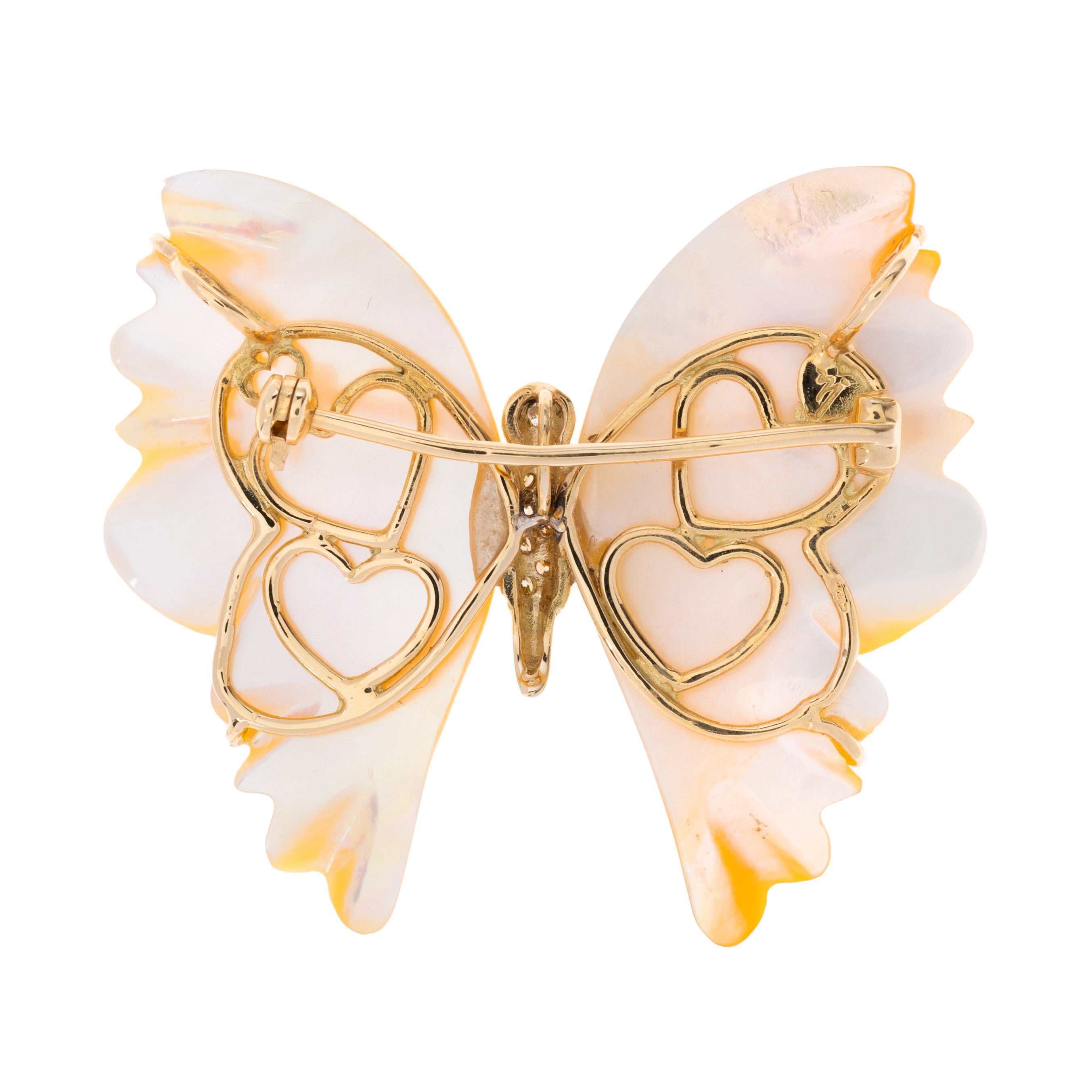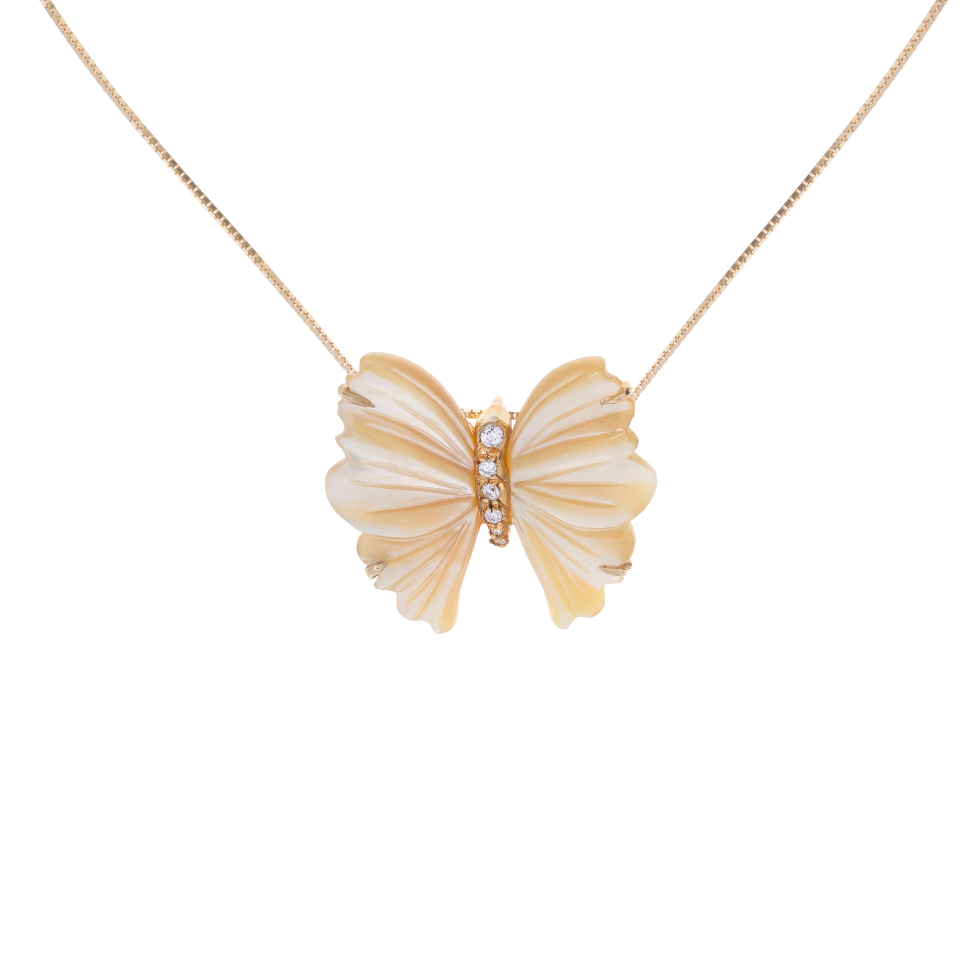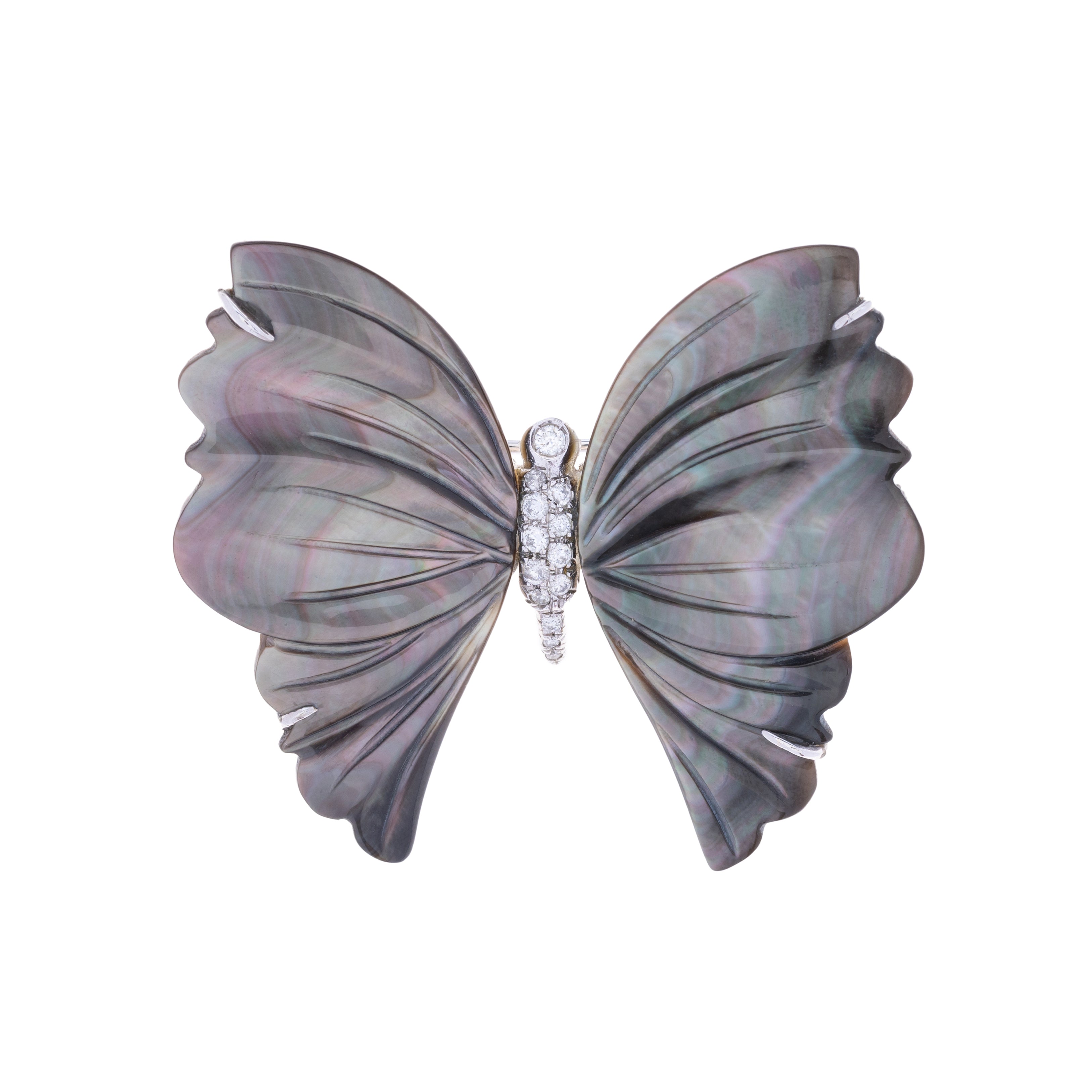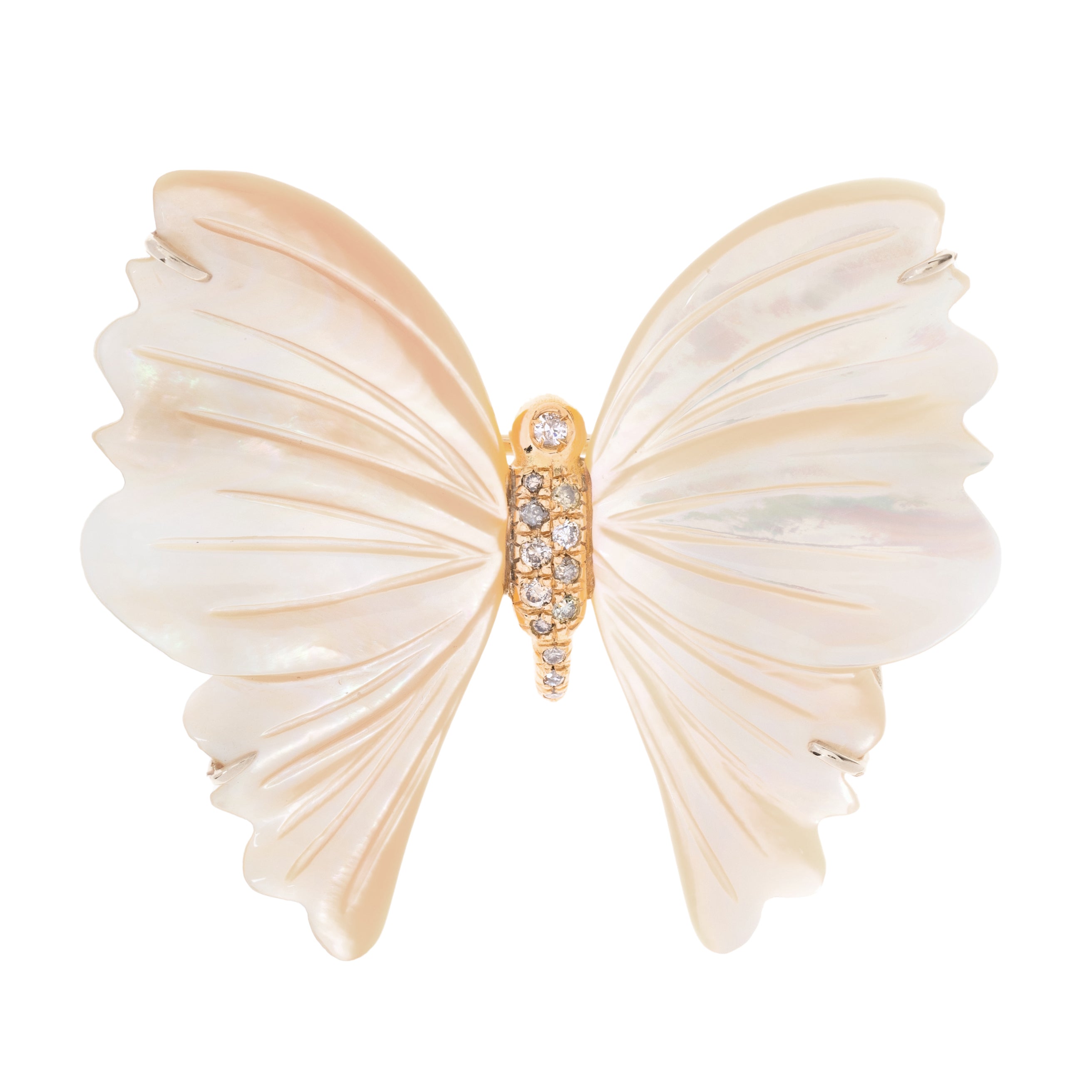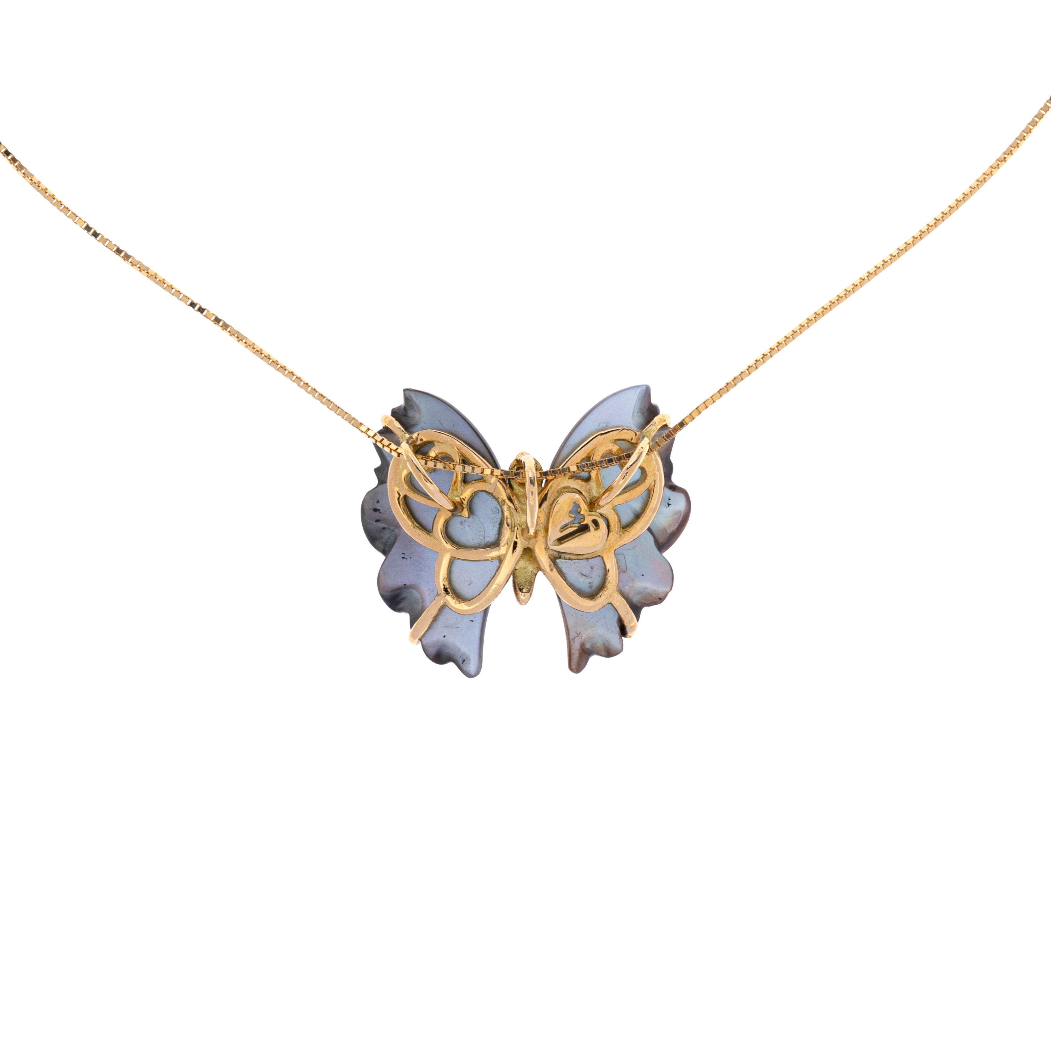 Ciondolo/Spilla Preziosa con farfalla in madreperla e oro giallo