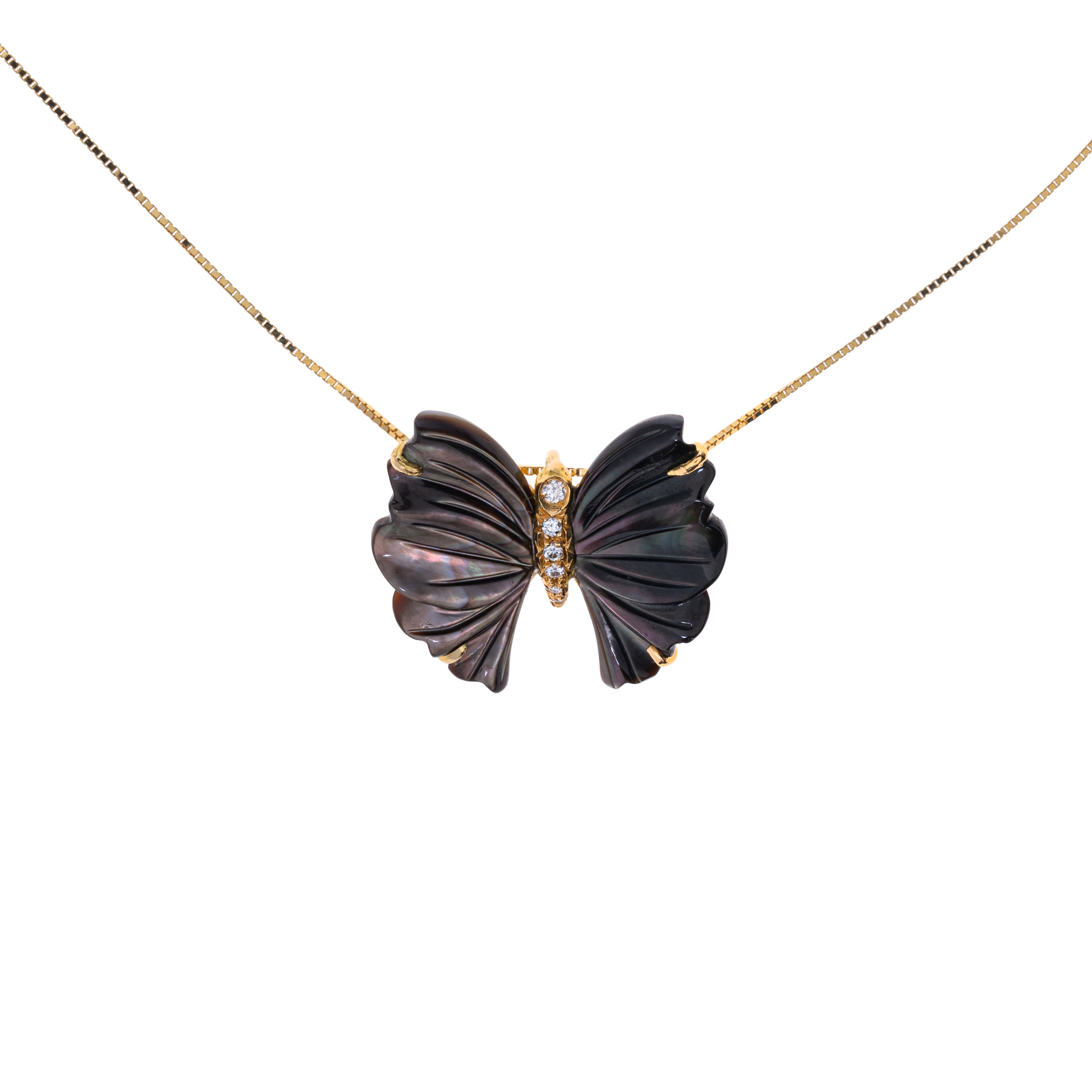 Ciondolo farfalla Ribelle in madreperla nera e argento