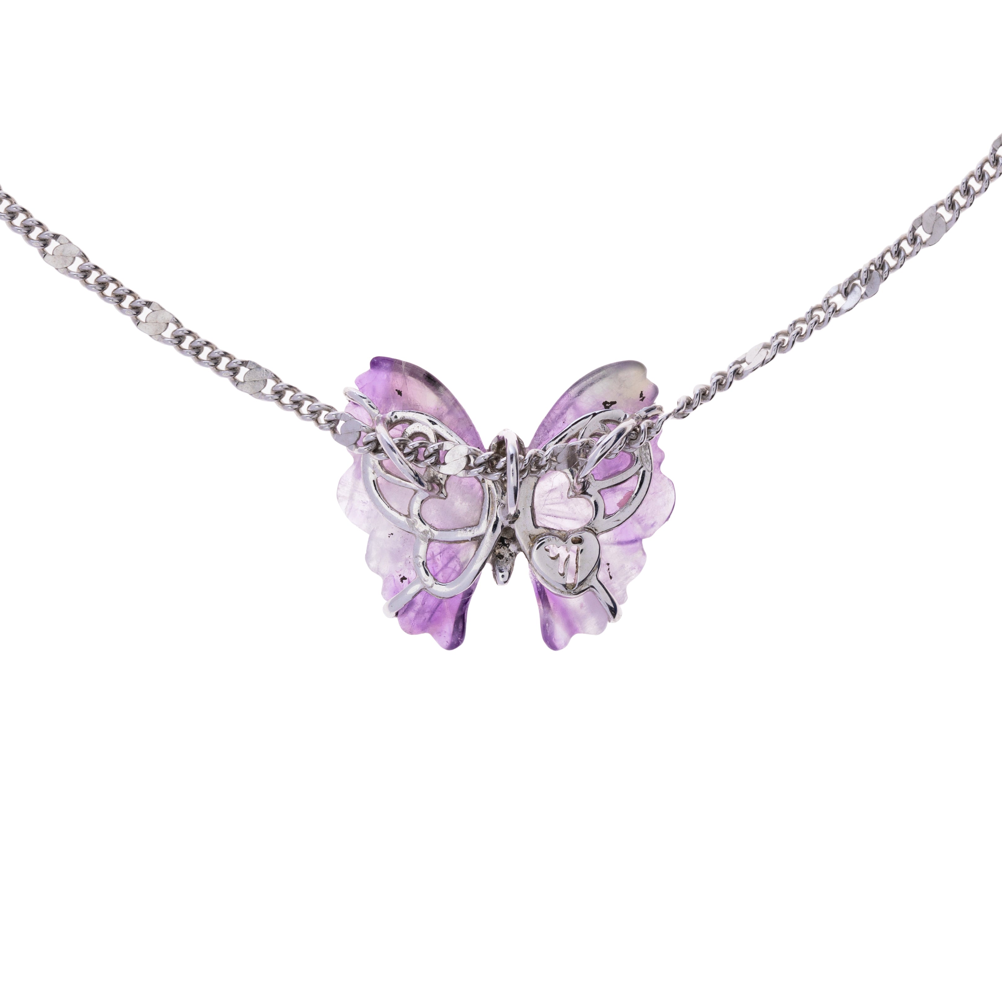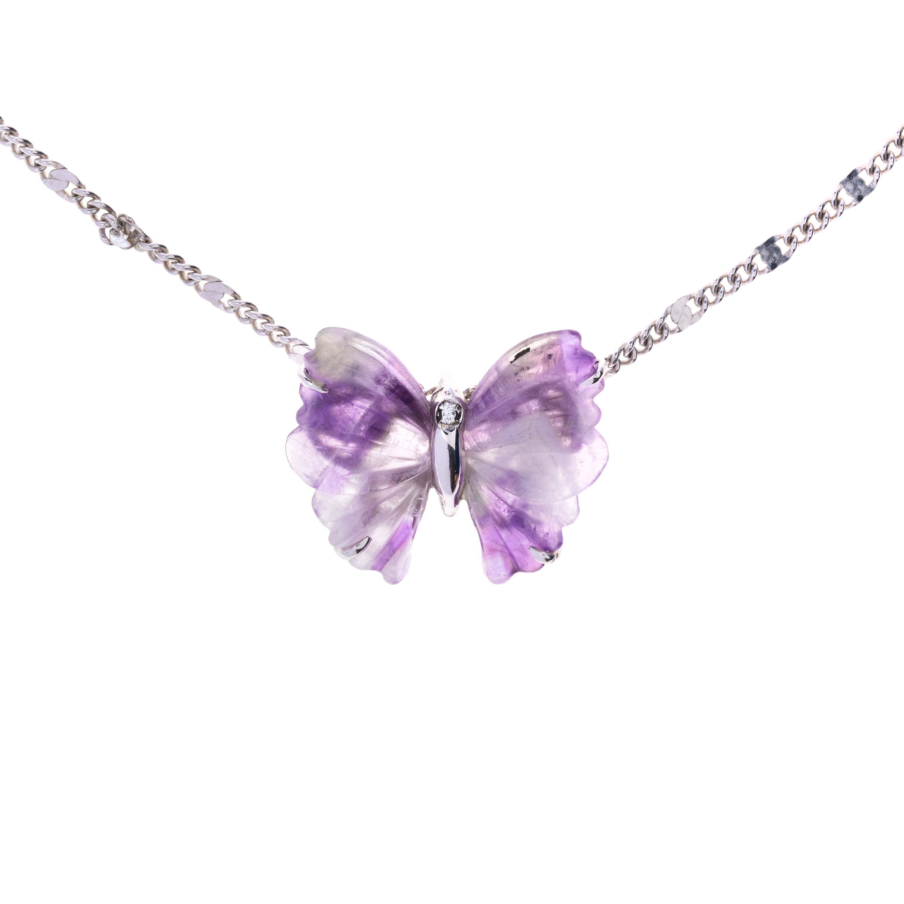 Ciondolo farfalla Ribelle in ametista e oro bianco