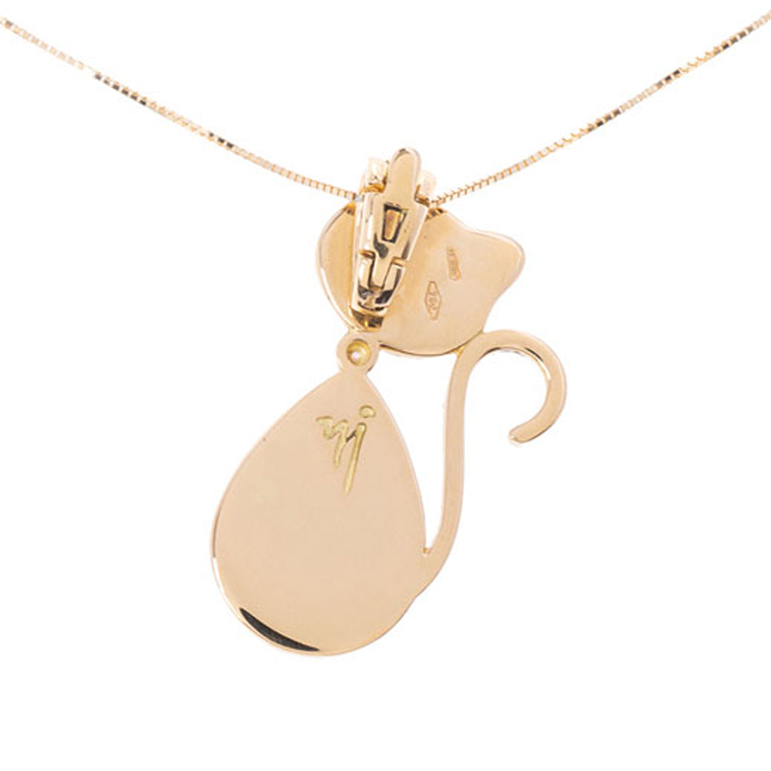 Ciondolo Luisa con gatto in oro giallo e diamanti