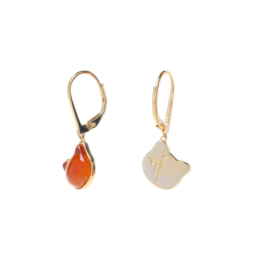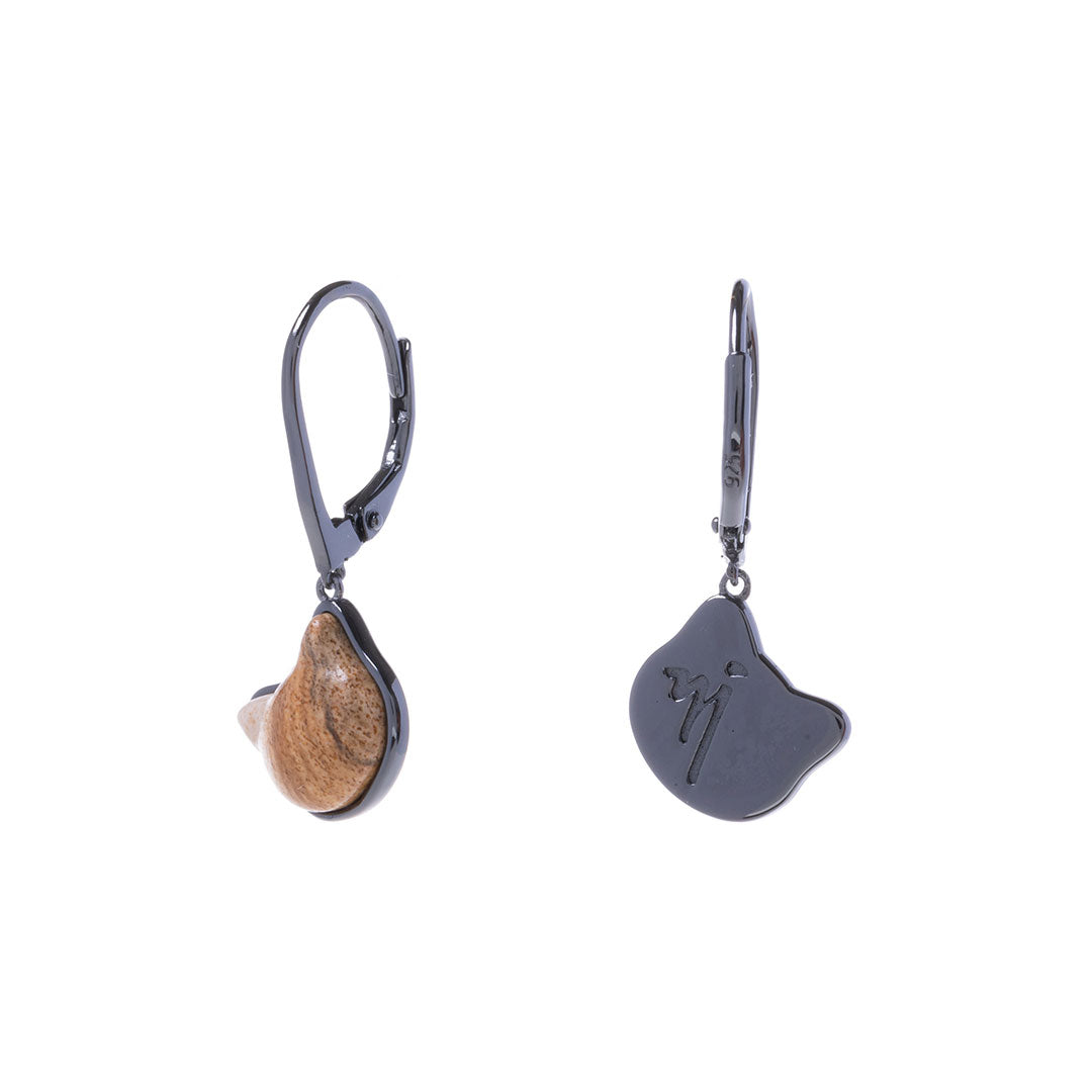 Orecchini Luisa a forma di gatto in argento e quarzo fumé