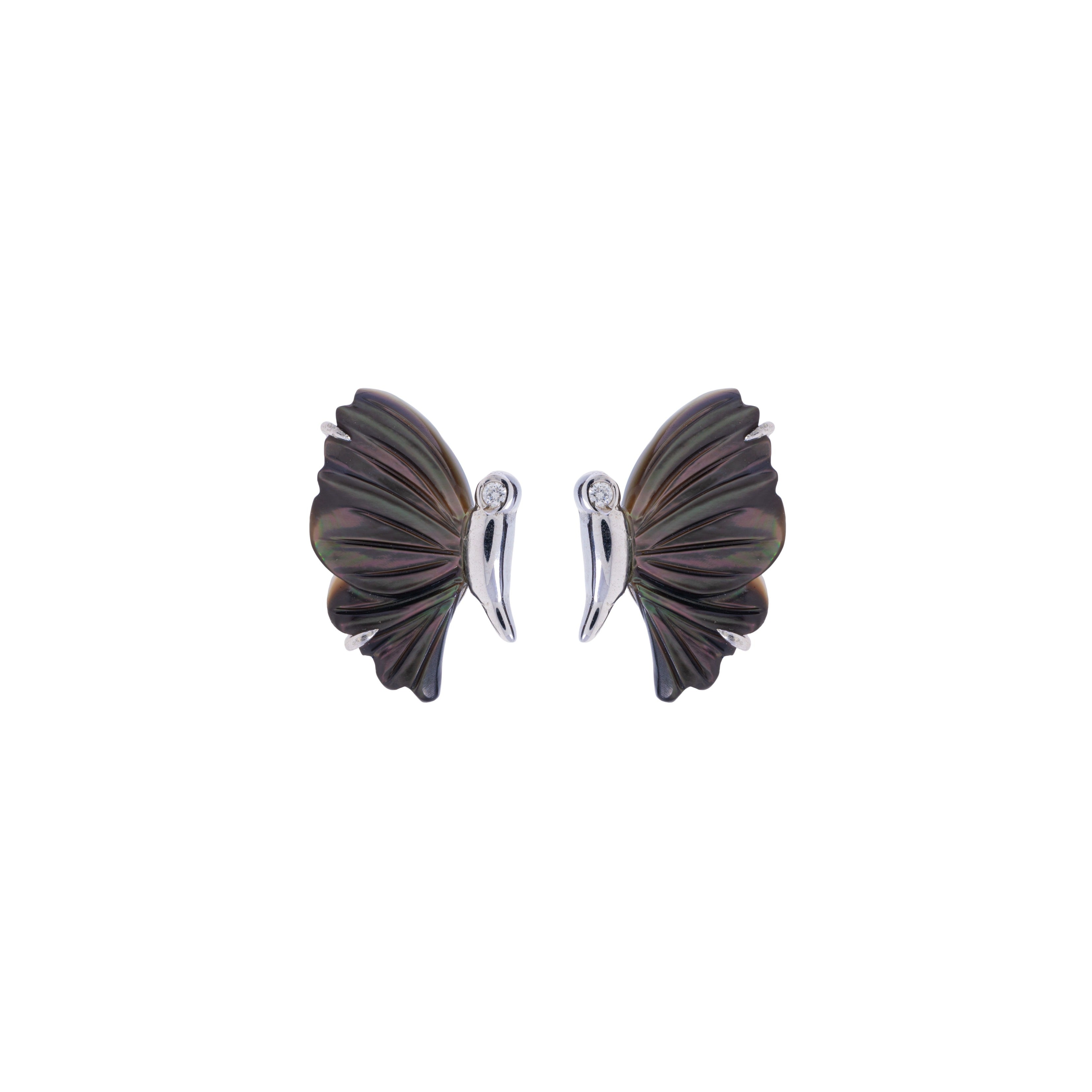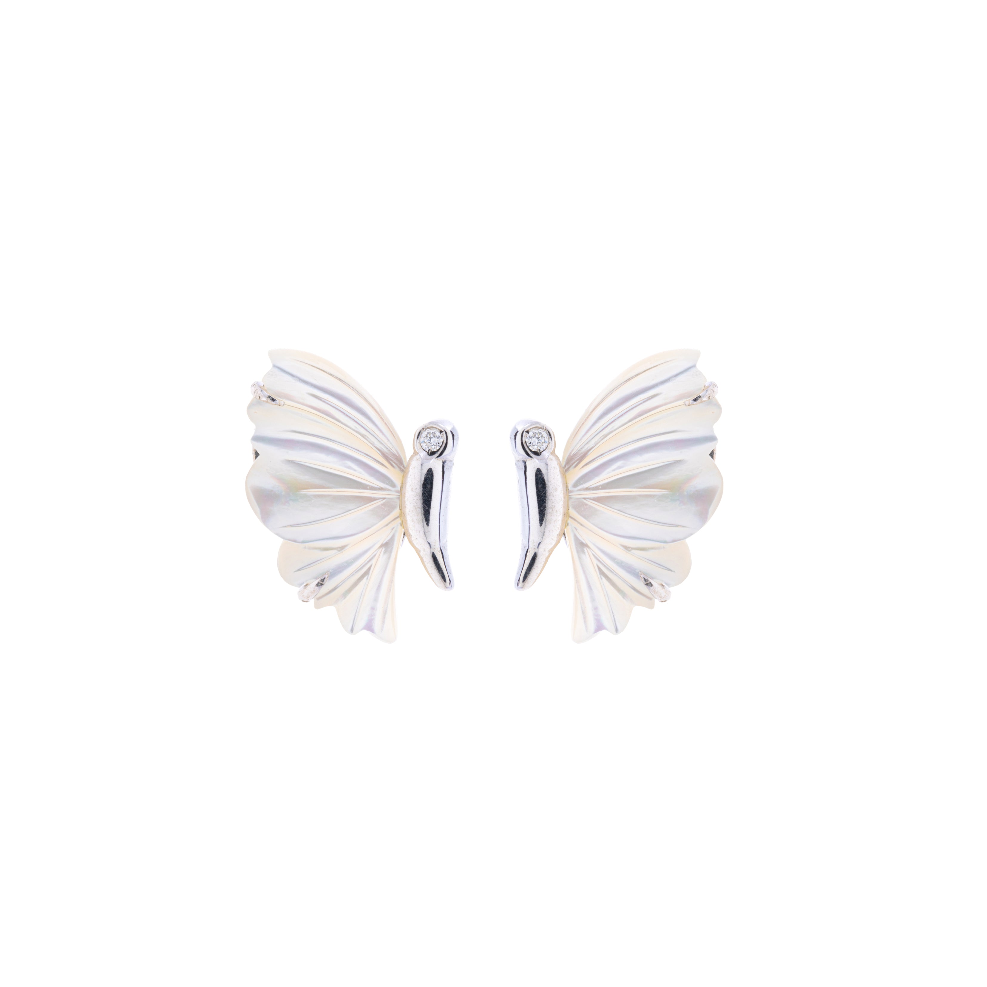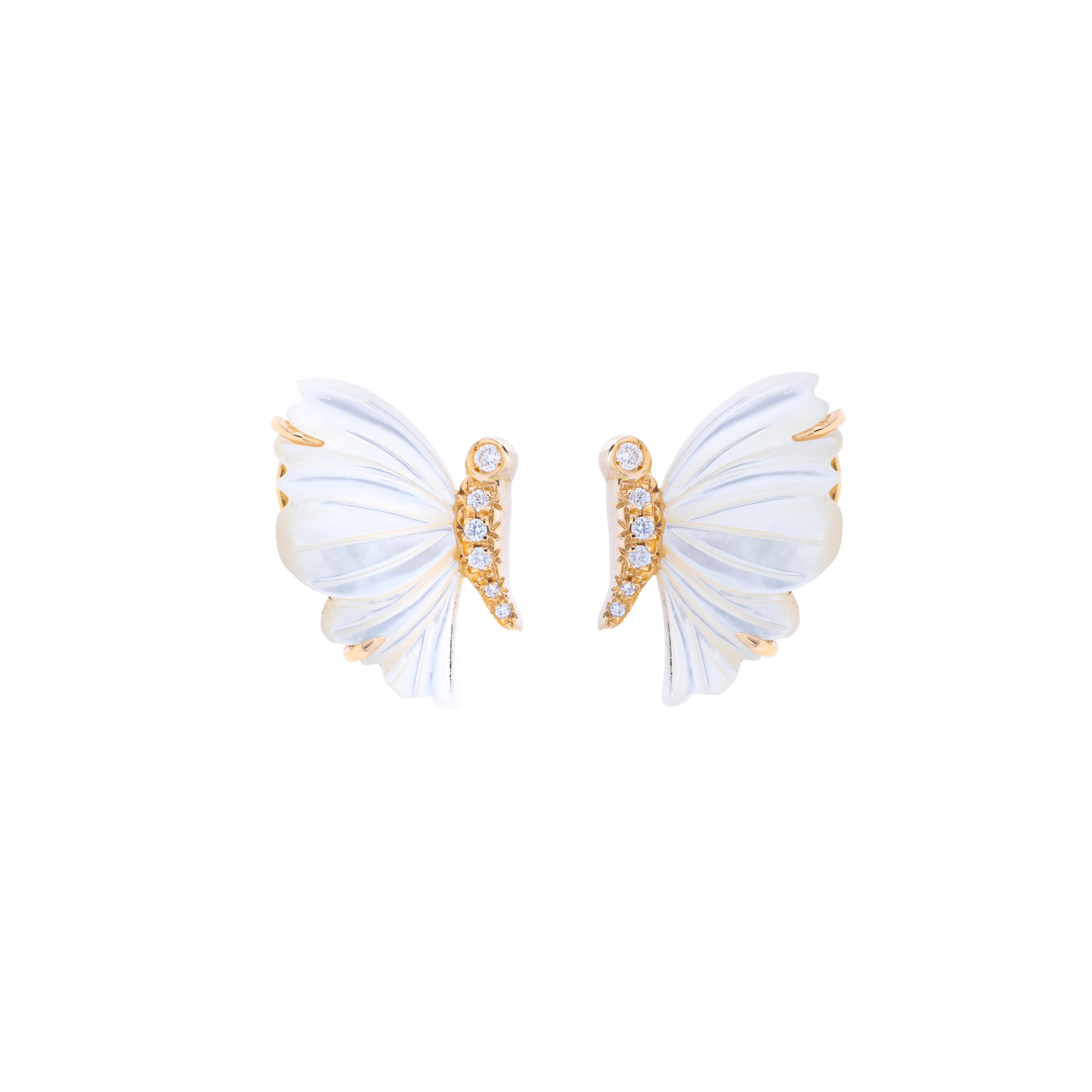 Orecchini Decisa a forma di farfalla in oro e madreperla bianca