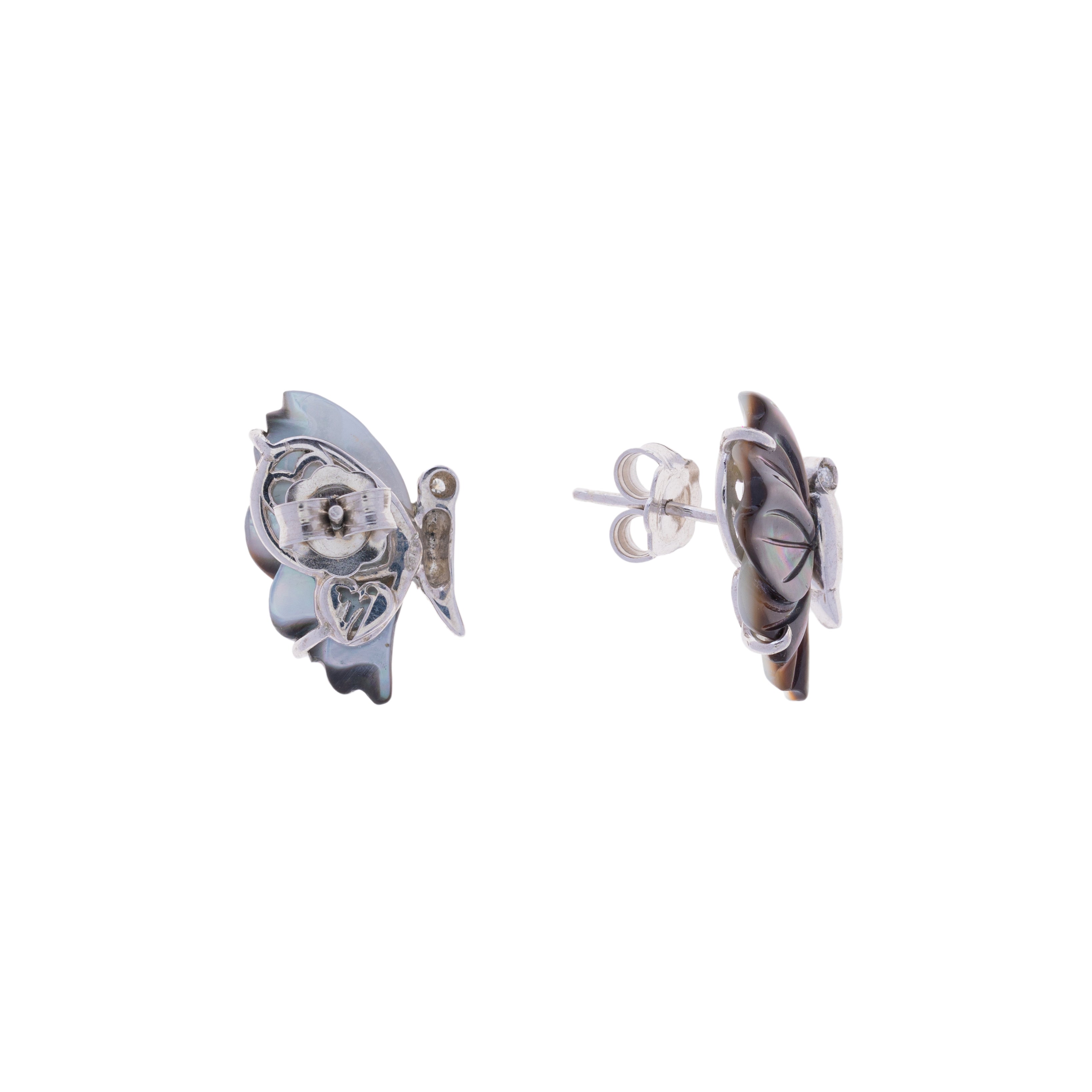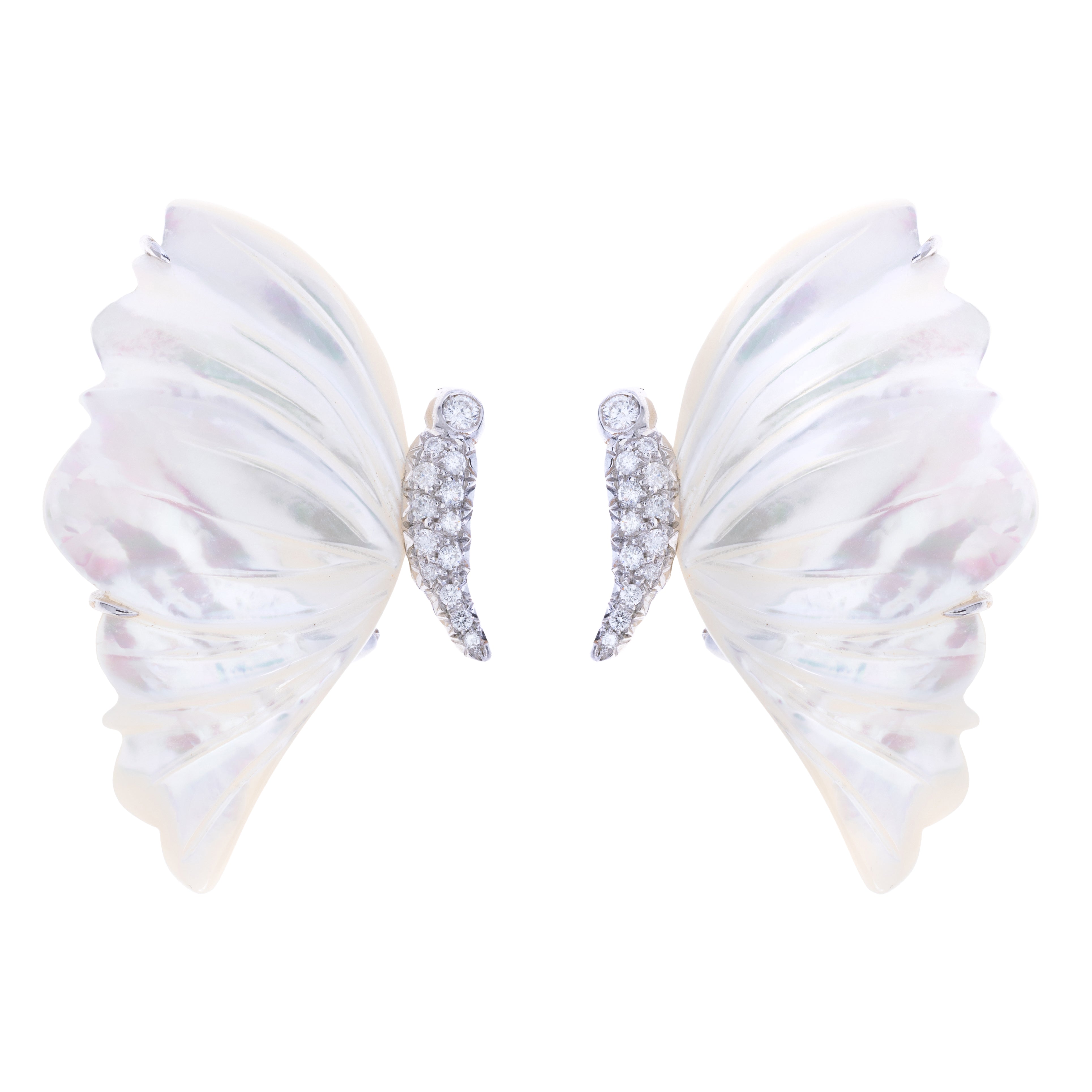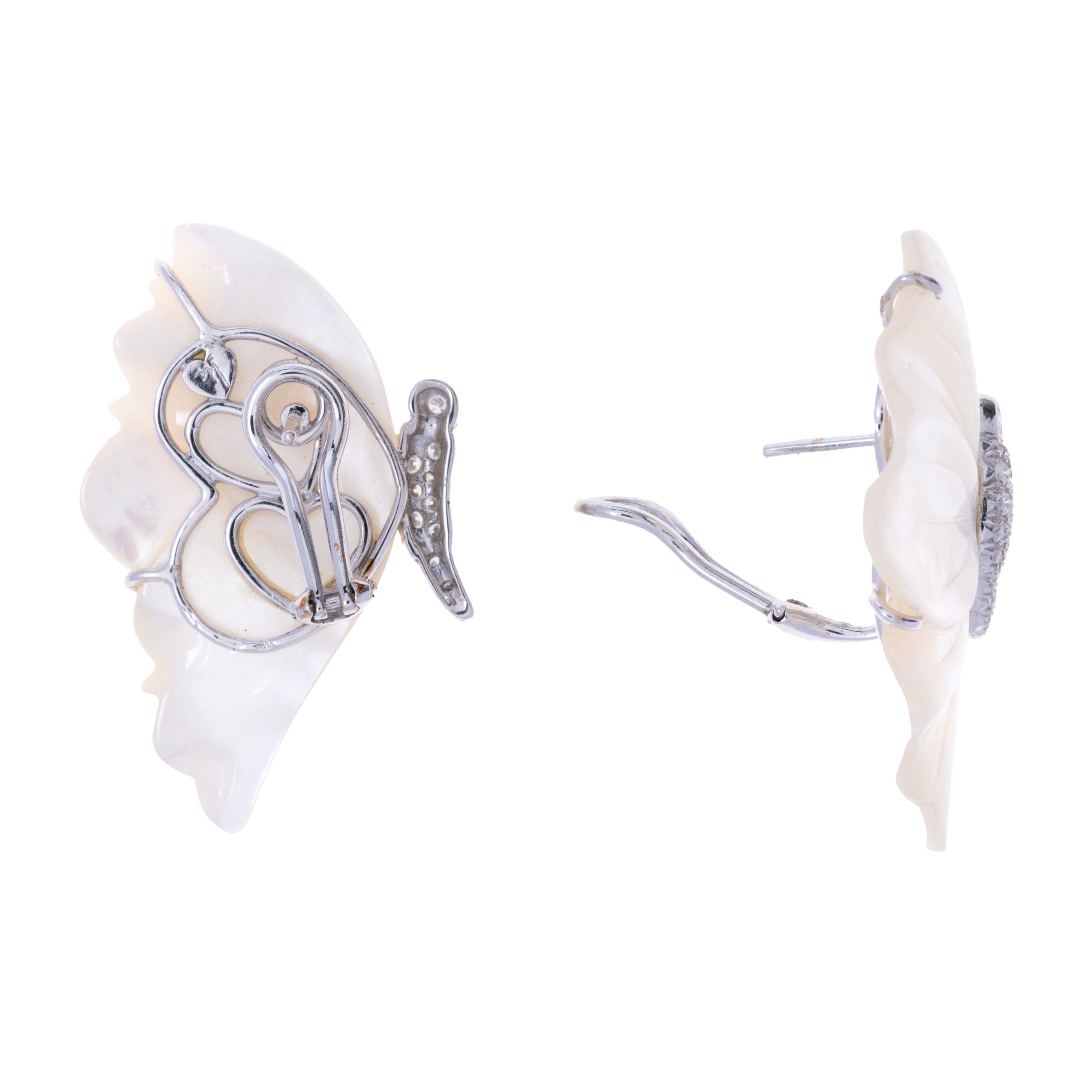 Orecchini Decisa a forma di farfalla in oro e madreperla bianca