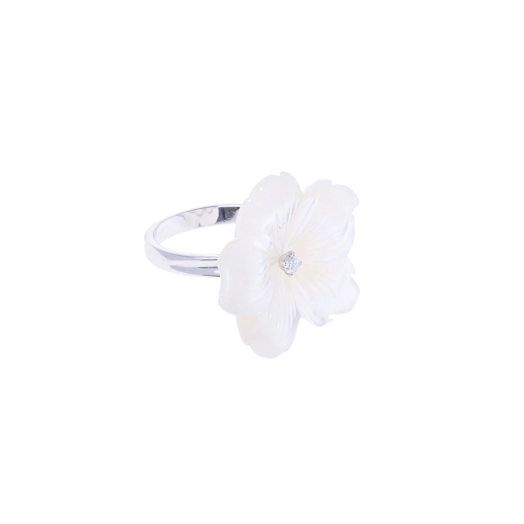 Anello Gelsomino con fiore bianco in oro e madreperla